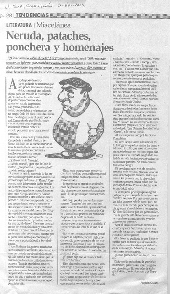 Neruda, pataches, ponchera y homenajes [artículo] Augusto Colarte.