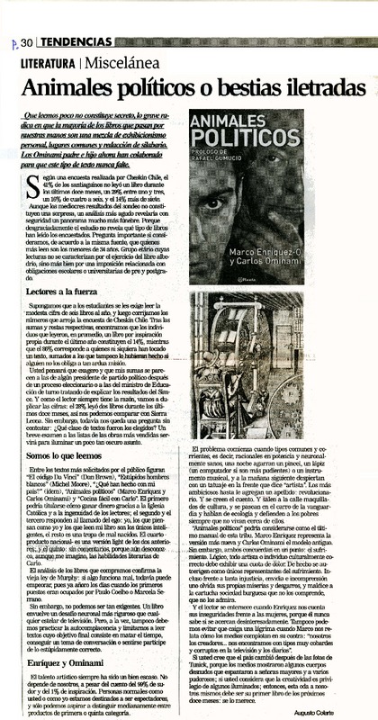Autores chilenos - Enríquez, Marco - Animales políticos - Ominami, Carlos
