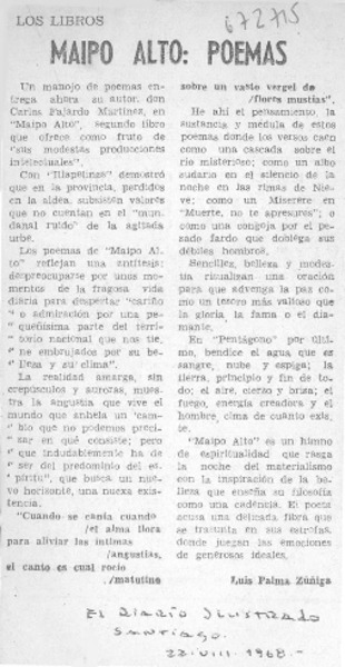 Maipo alto: poemas [artículo] Luis Palma Zúñiga.