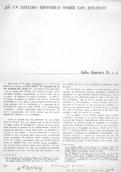 ¿Es un estudio histórico sobre los jesuitas? [artículo] Julio Jiménez B.