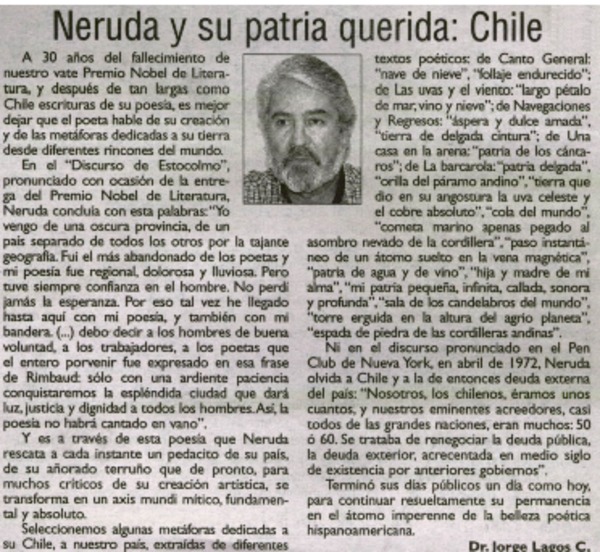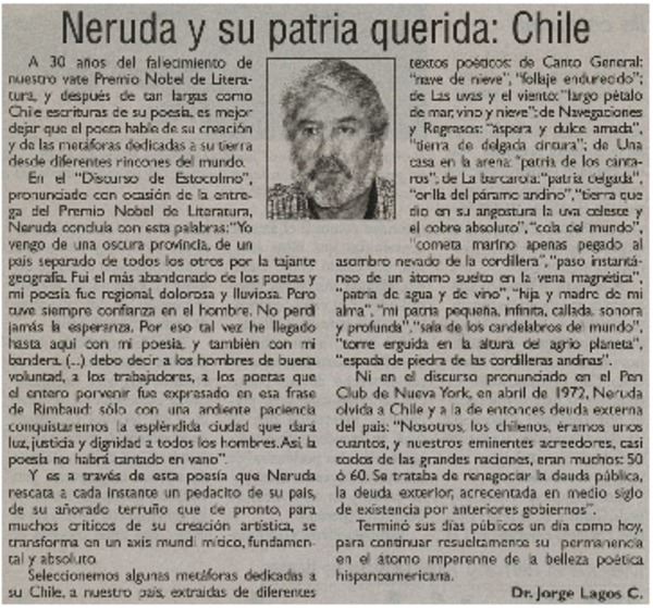 Neruda y su patria querida: Chile [artículo] Jorge L. Lagos C.