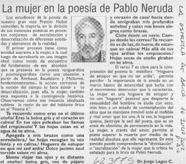 La mujer en la poesía de Pablo Neruda [artículo] Jorge Lagos C.