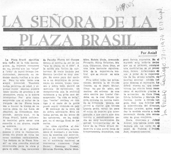 Autores chilenos - Letelier, Hernán - La señora de la plaza Brasil