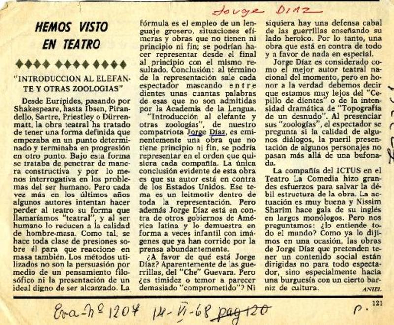 Introducción al elefante y otras zoologías" [artículo] Aniel.
