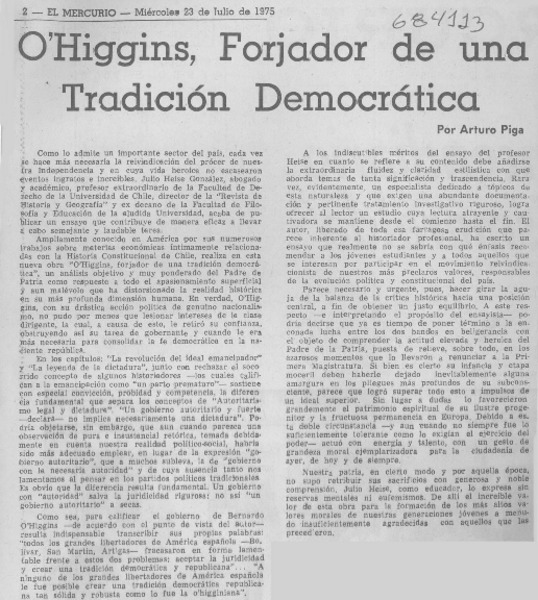 O'Higgins, forjador de una tradición democrática [artículo] Arturo Piga.