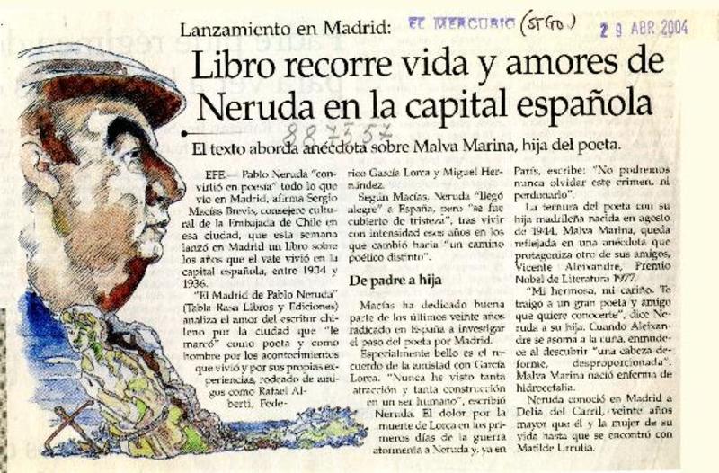 Libro recorre vida y amores de Neruda en la capital española [artículo]