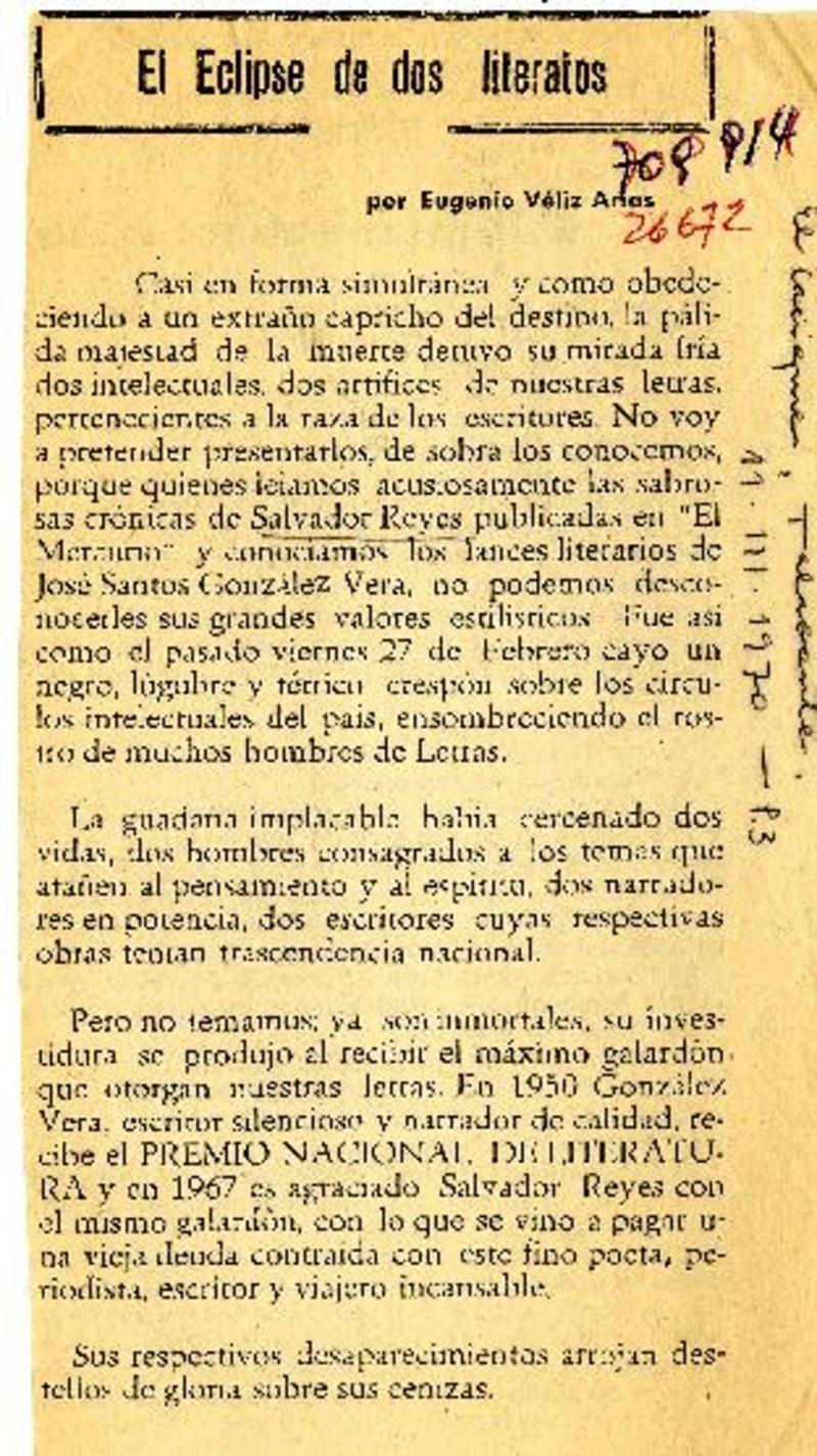 El eclipse de dos literatos [artículo] Eugenio Véliz Arias.
