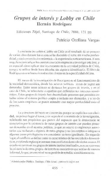 Grupos de interés y lobby en Chile [artículo] Patricio Orellana Vargas.