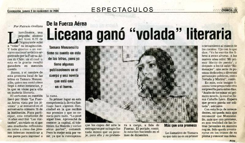 Liceana ganó "volada" literaria [artículo]Patricio Orellana.