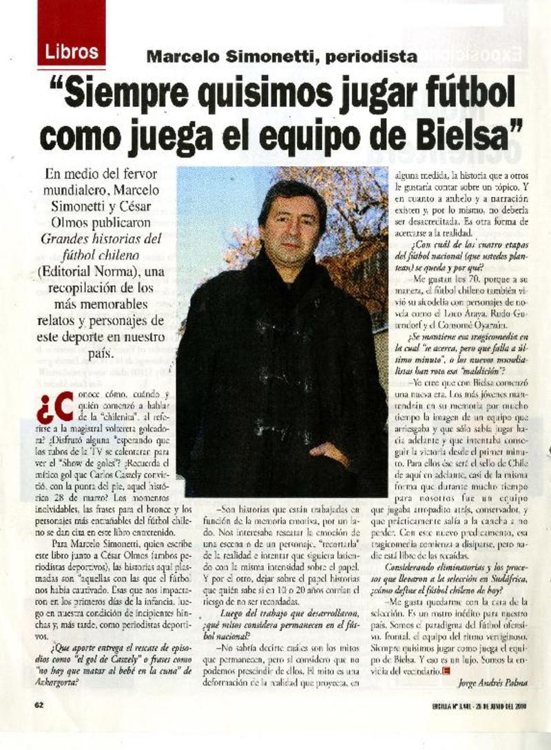 Autores chilenos - Entrevistas - Olmos, César - Grandes historias del fútbol chileno - Simonetti, Marcelo