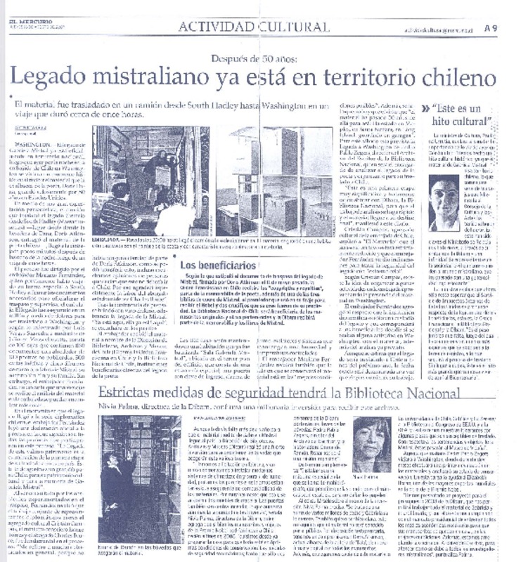 Legado mistraliano ya está en territorio chileno [artículo] Antonieta Cádiz.