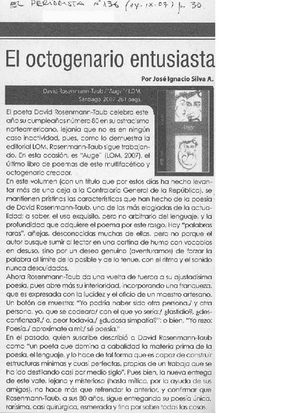 El octogenario entusiasta [artículo] Jose Ignacio Silva A.