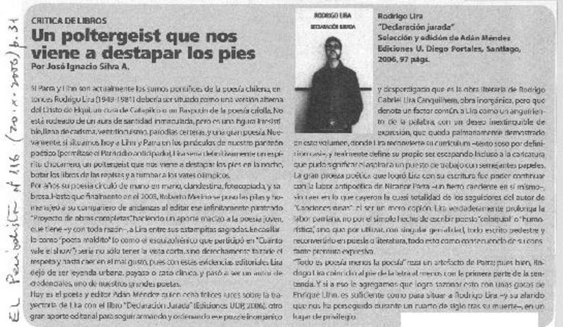 Un poltergeist que nos viene a destapar los pies [artículo] José Ignacio Silva A.