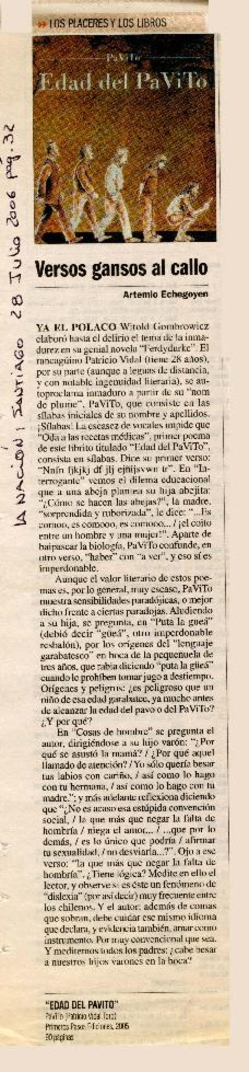 Versos gansos al callo [artículo] Artemio Echegoyen.