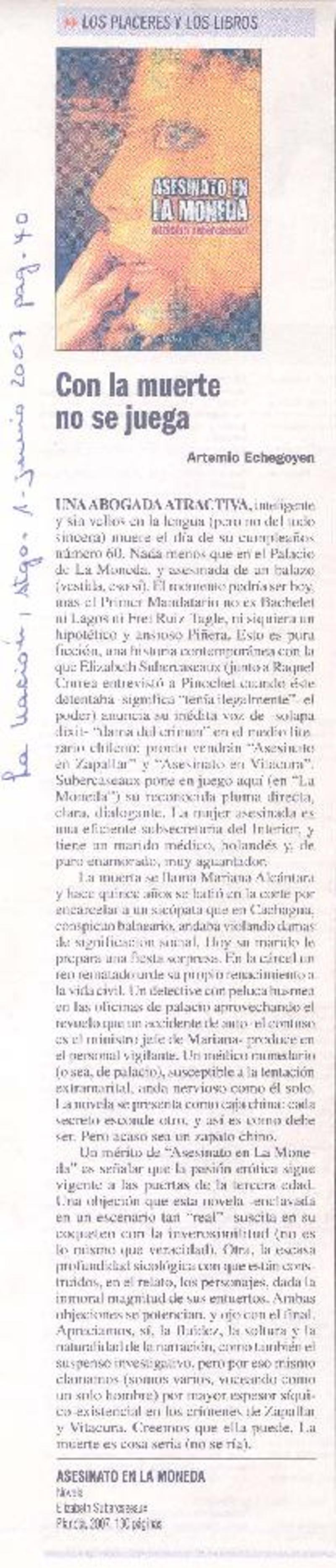 Con lam uerte no se juega [artículo] Artemio Echegoyen.