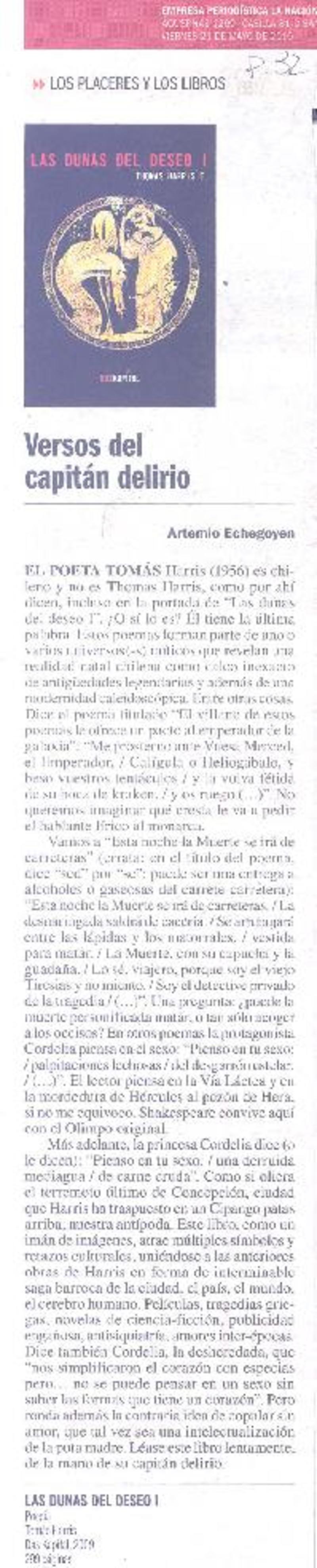 Versos del capitán delirio [artículo] Artemio Echegoyen.