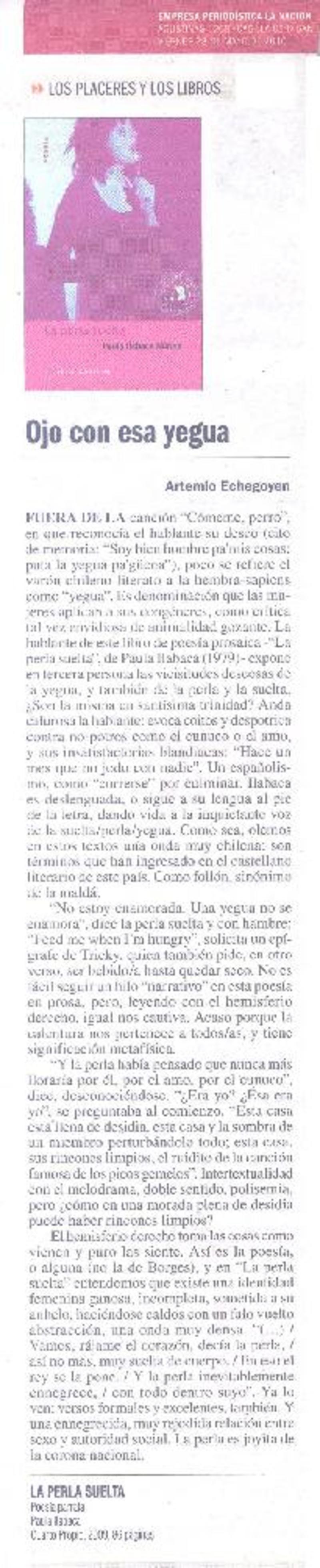 Ojo con esa yegua [artículo] Artemio Echegoyen.