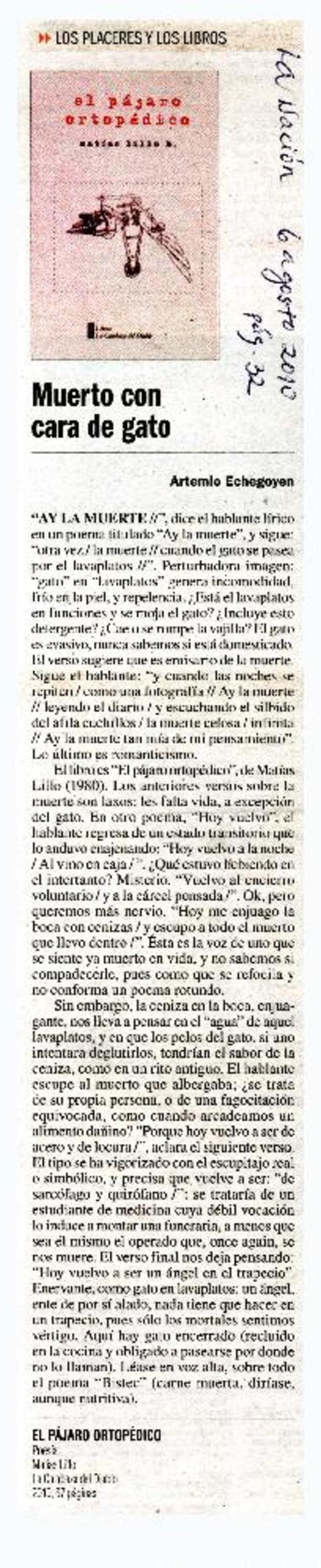 Muerto con cara de gato [artículo] Artemio Echegoyen.