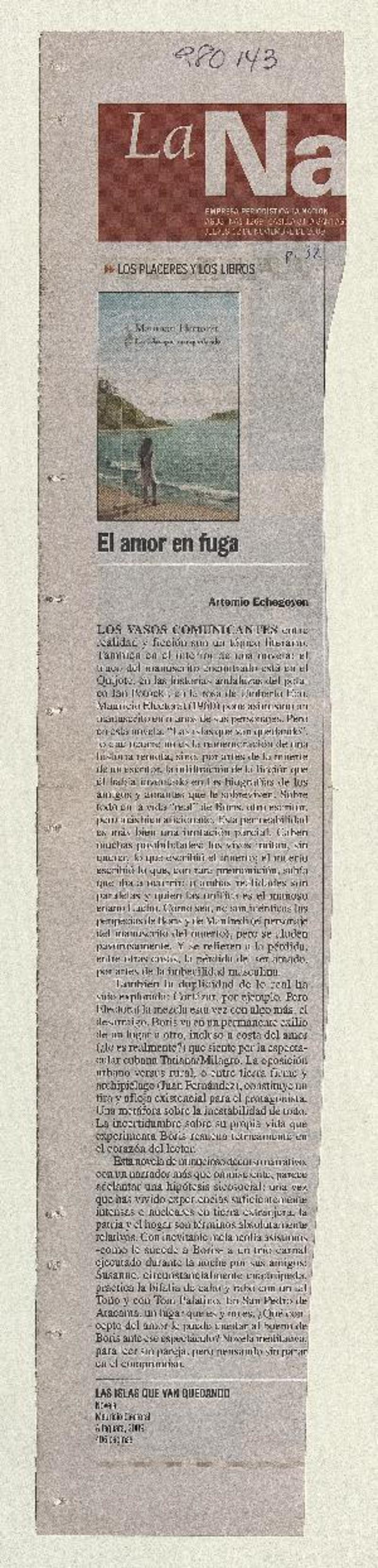 Última novela de Javier Marías [artículo] Artemio Echegoyen.