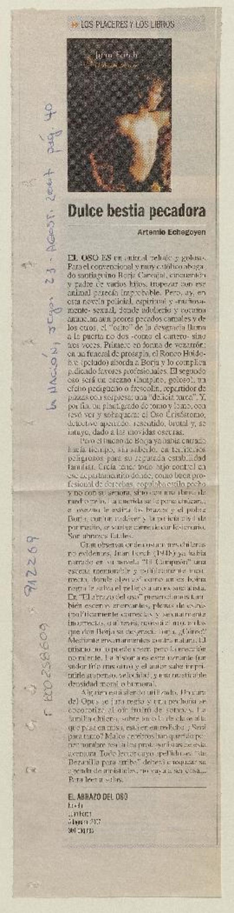 Dulce bestia pecadora [artículo] Artemio Echegoyen.