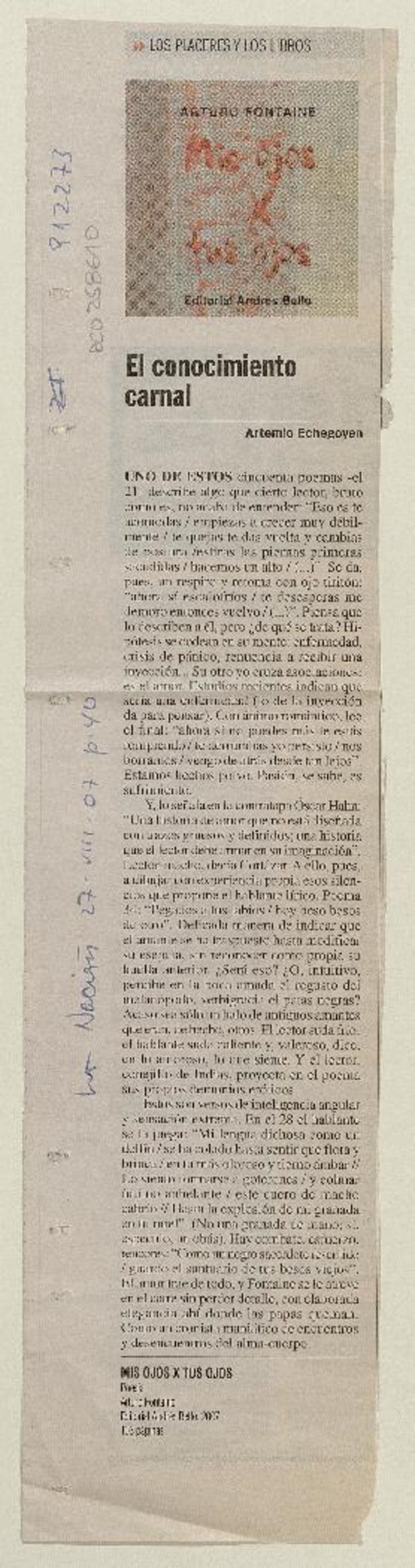 El conocimiento carnal [artículo] Artemio Echegoyen.