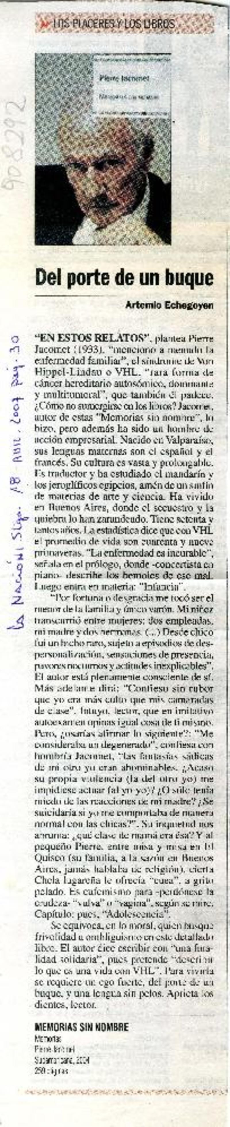 Autores chilenos - Jacomet Ollivet, Pierre - Memorias sin nombre