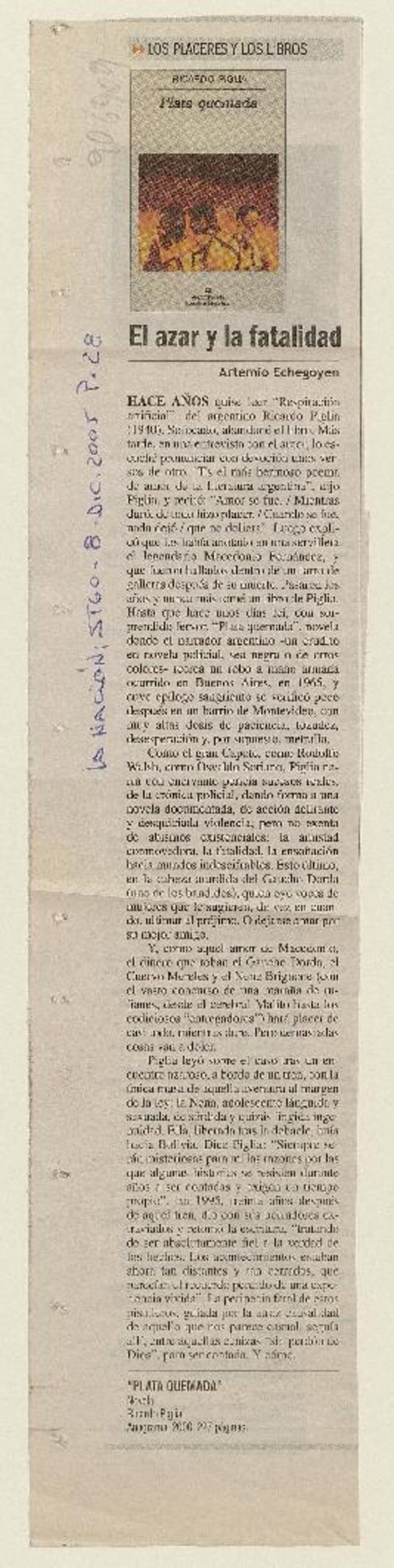 El azar y la fatalidad [artículo] Artemio Echegoyen.