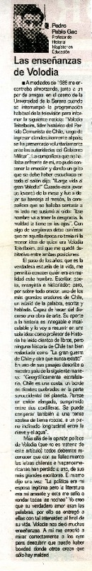 Las enseñanzas de Volodia [artículo]Pedro Pablo Gac.