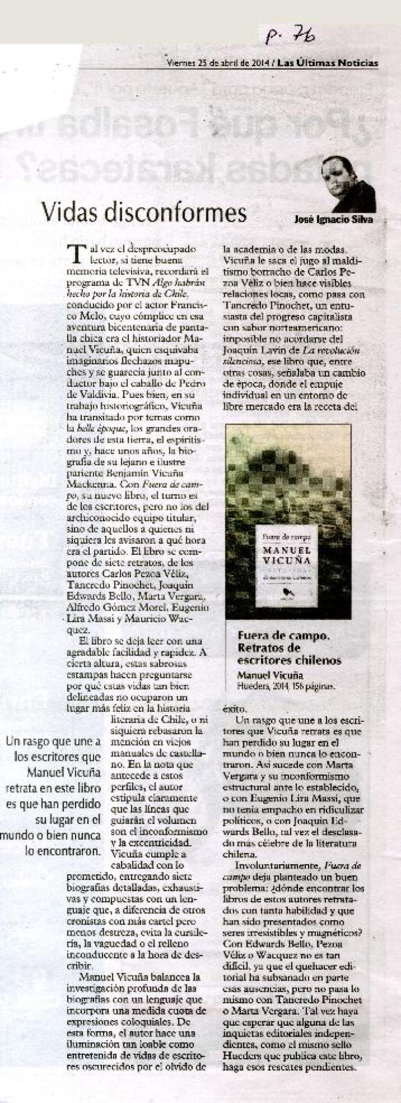 Autores chilenos - Vicuña Urrutia, Manuel - Fuera de campo. Retratos de escritores chilenos