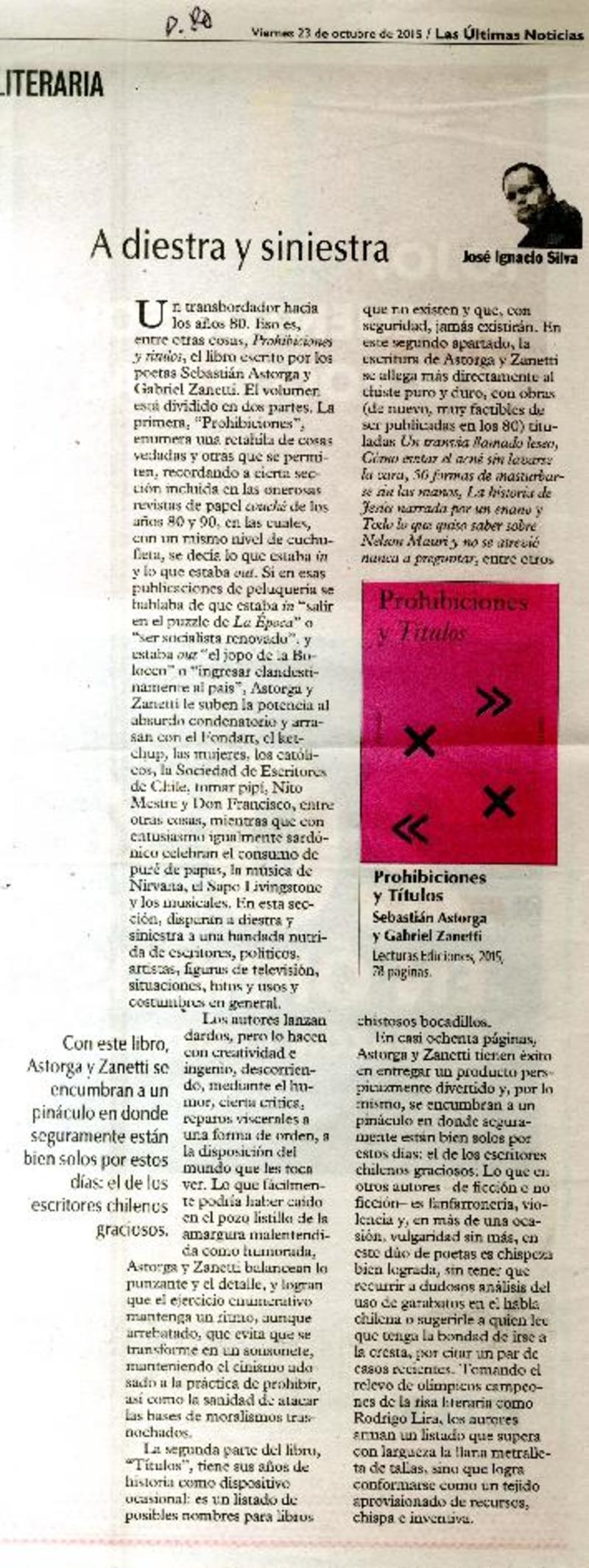 Autores chilenos - Astorga, Sebastián - Prohibiciones y títulos - Zanetti, Gabriel