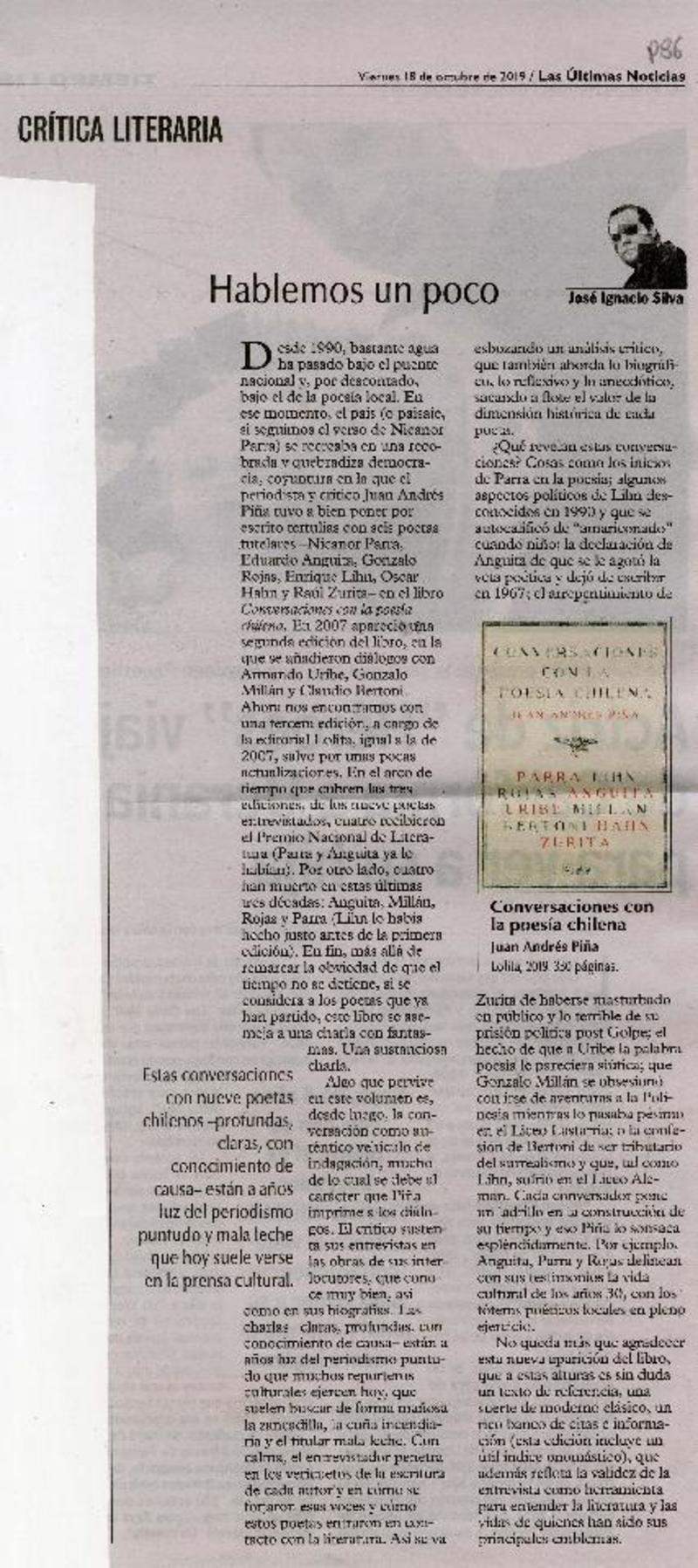 Autores chilenos - Piña, Juan Andrés - Conversaciones con la poesía chilena