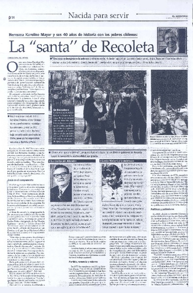 La "santa" de Recoleta [artículo] Pamela Aravena Bolívar.