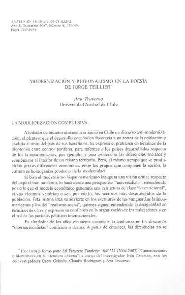 Modernización y regionalismo en lal poesía de Jorge Teillier [artículo]