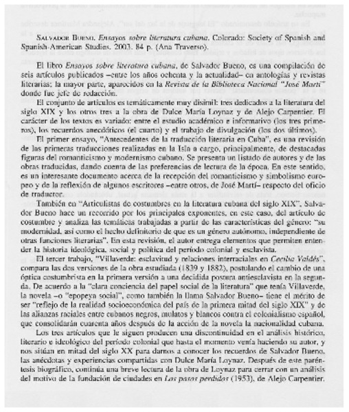 Ensayos sobre literatura cubana [artículo] Ana Traverso.