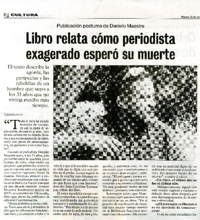 Libro relata cómo periodista exagerado esperó su muerte [artículo] Fabián Llanca.