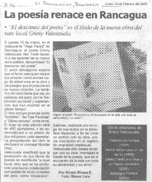 La Poesía renace en Rancagua [artículo] Alvaro Rivera E.