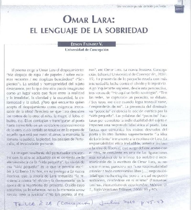 El lenguaje de la sobriedad [artículo] Edson Faúndez V.