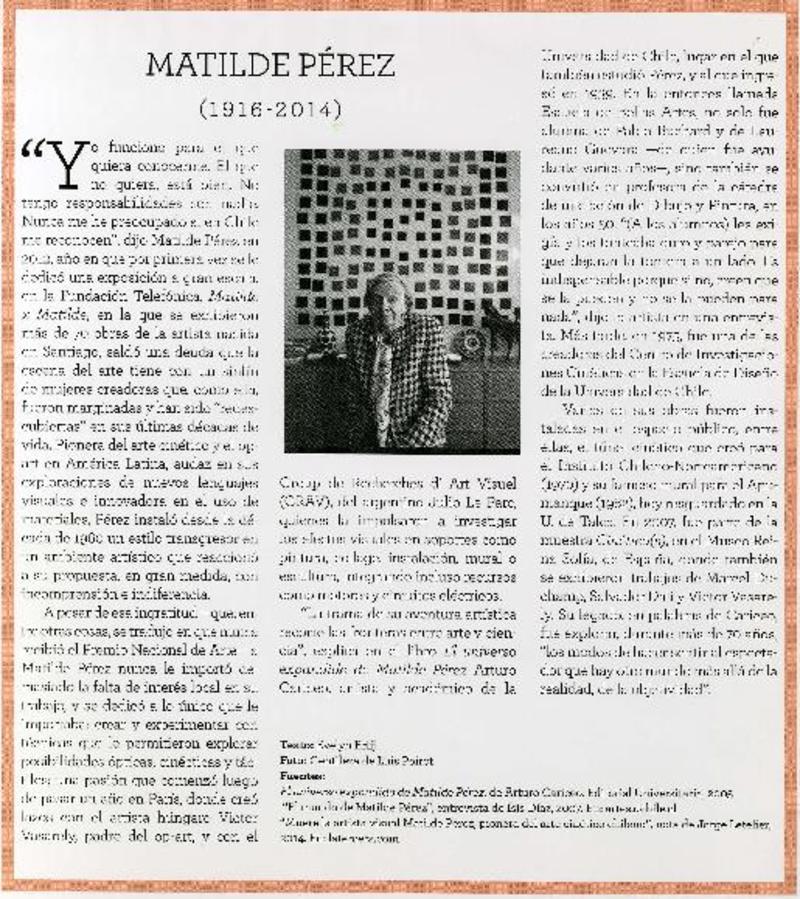 Matilde Pérez (1916 - 2014) [artículo] Evelyn Erlij.