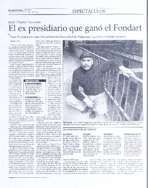Raúl "Papito" Guzmán: El ex presidiario que ganó el Fondart [artículo] Bárbara Muñoz.