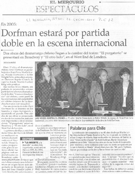 Dorfman estará por partida doble en la escena internacional [artículo] Bárbara Muñoz.