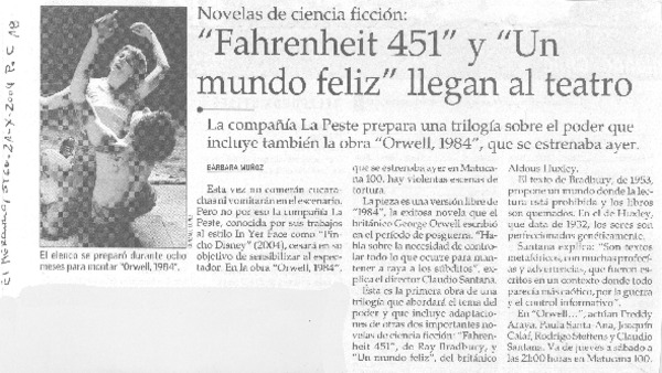 "Fahrenheit 451" y "un mundo feliz" llegan al teatro [artículo] Bárbara Muñoz.