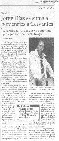 Jorge Díaz se suma a homenajes a Cervantes. [artículo] Bárbara Muñoz.