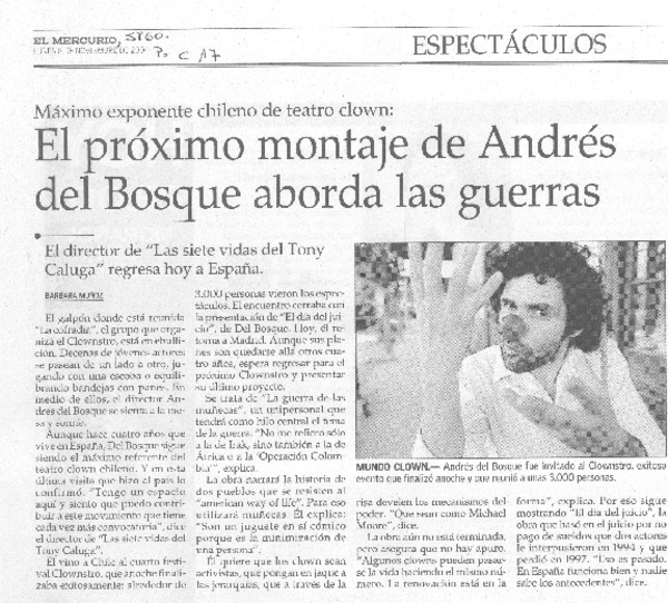 El próximo montaje de Andrés del Bosque aborda las guerras [artículo] Bárbara Muñoz