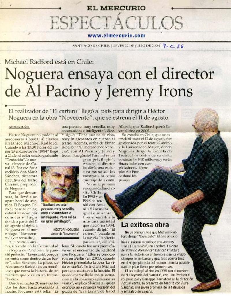 Noguera ensaya con el director de Al Pacino y Jeremy Irons [artículo] Bárbara Muñoz.