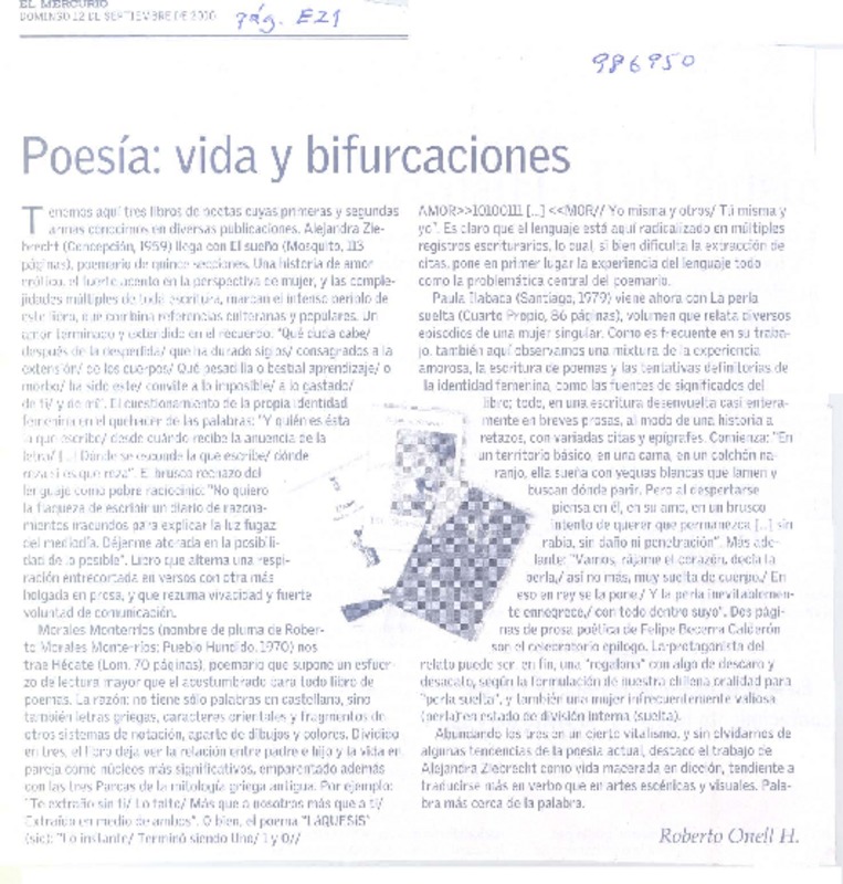 Poesía: vida y bifurcaciones [artículo] Roberto Onell H.