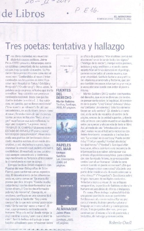 Autores chilenos - Almanaque - Pinos, Jaime - Gubbins, Martín - Fuenes del derecho - Saldivias, Enrique - Papeles del mar