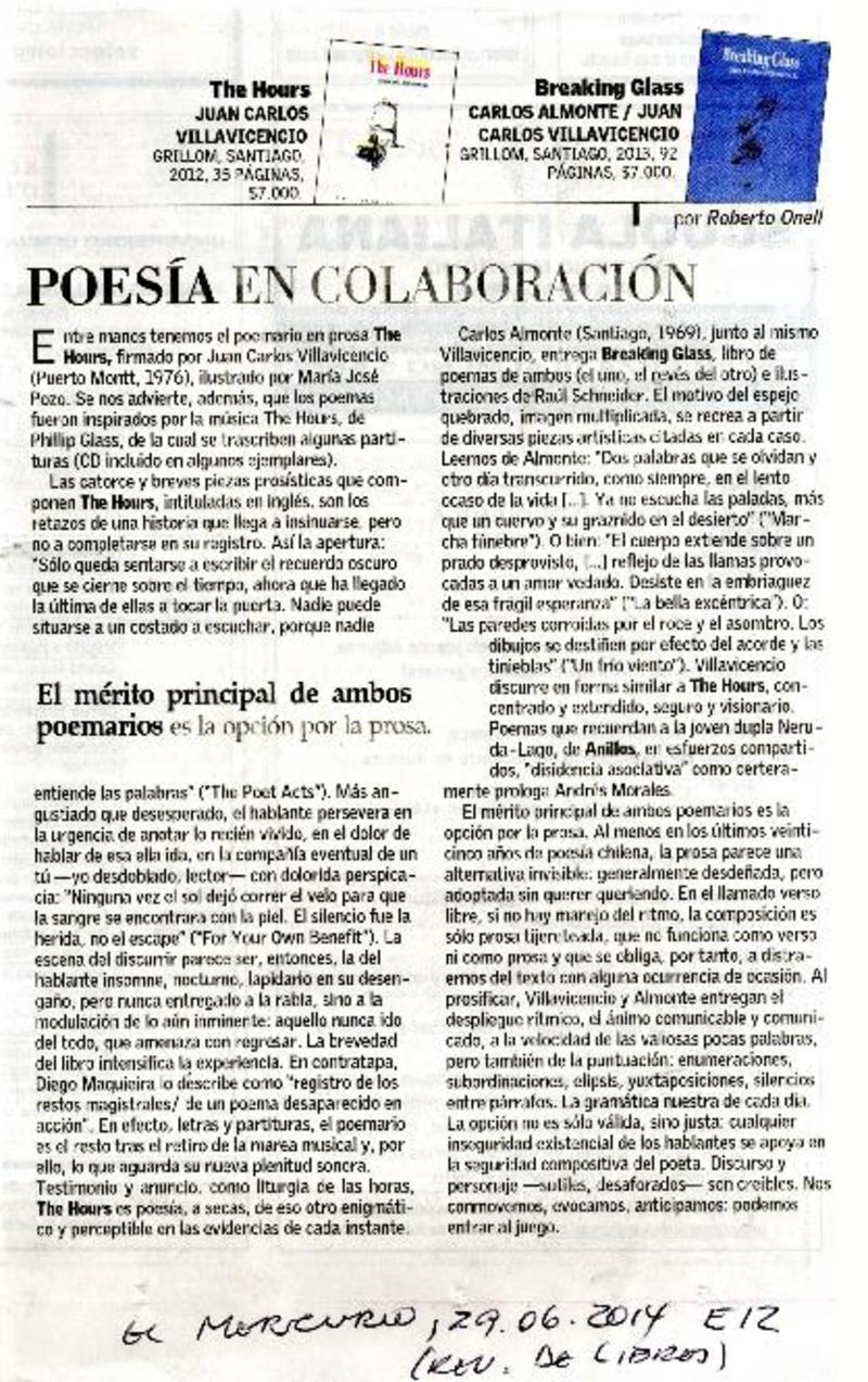 Autores chilenos - Almonte, Carlos - Breaking Glass - Villavicencio, Juan Carlos - The Hours