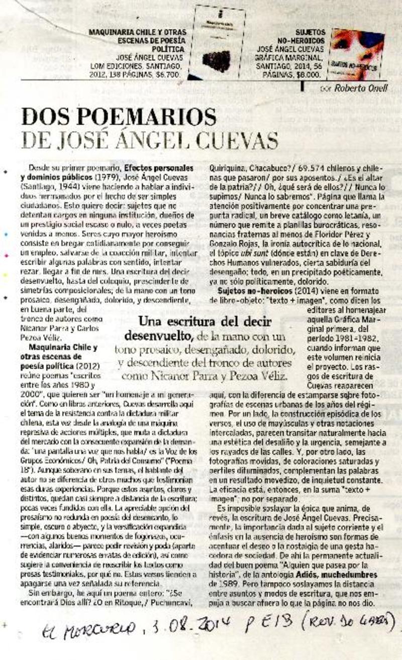 Dos poemarios de José Ángel Cuevas [artículo] Roberto Onell