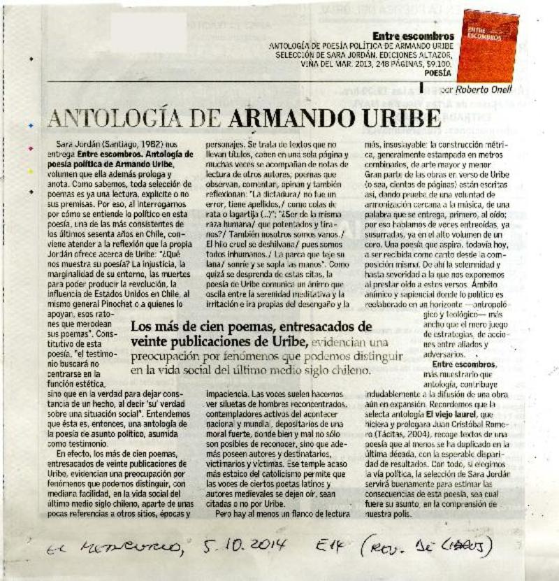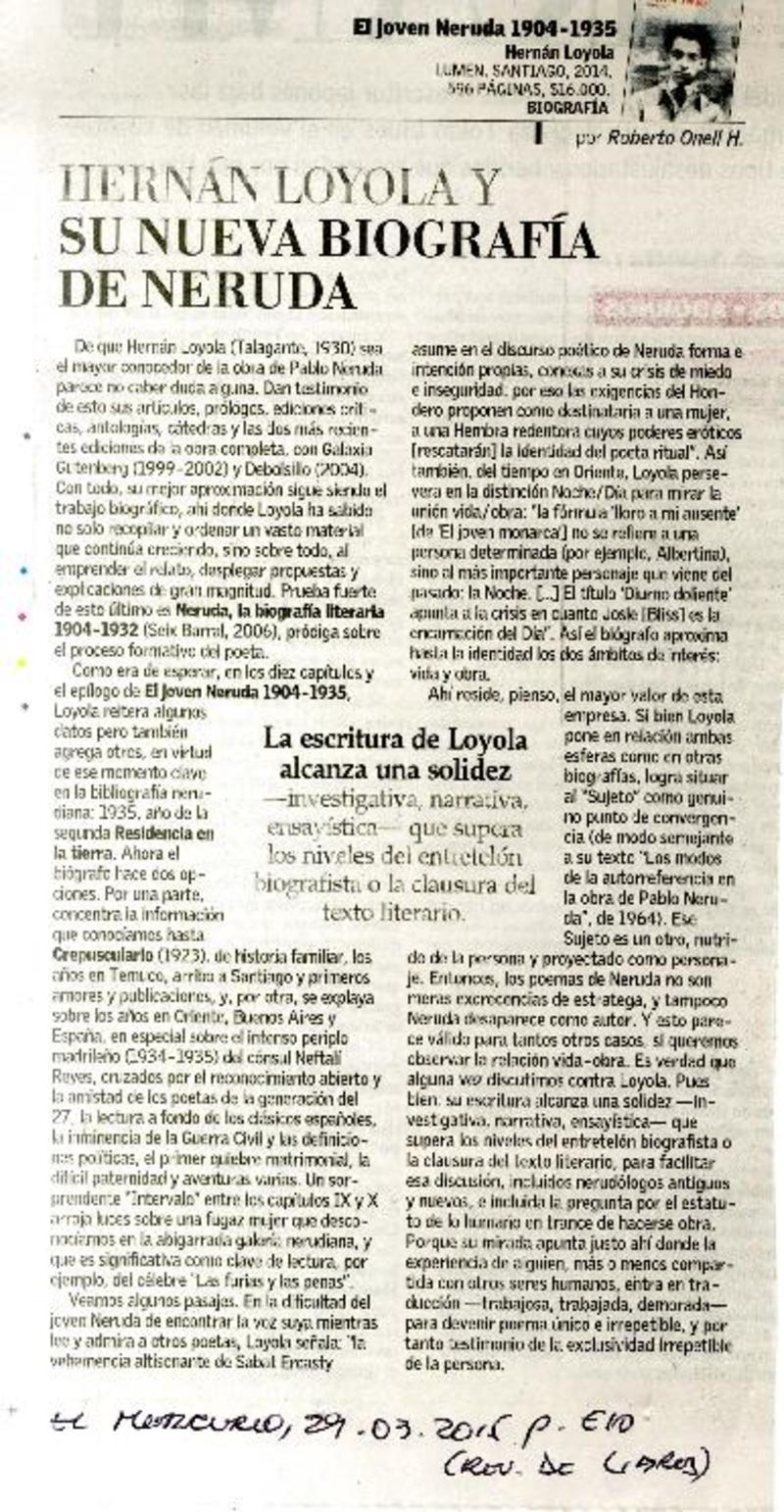 Hernán Loyola y su nueva biografía de Neruda [artículo] Roberto Onell.