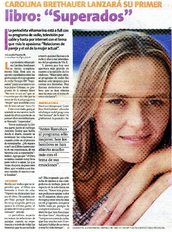 ![Carolina Brethauer lanzarà su primer libro "Superados" [artículo] Claudia Pizarro M. Carolina Brethauer lanzarà su primer libro "Superados" [artículo] Claudia Pizarro M.](channels-528_mime_jpg.gif)